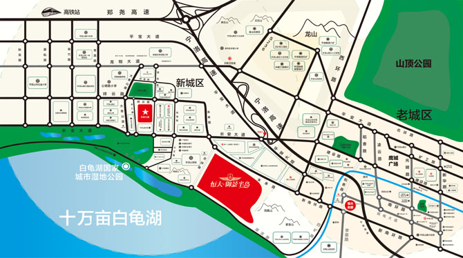 恒大御景半岛,是恒大集团在平顶山继恒大名都之后开发建设的扛鼎新作,项目位于平顶山市新城区湖滨路东部片区,拥内陆城市稀缺滨水地段,享白龟湖一线开阔湖景,生态景观条件十分优越。紧邻平顶山学院,书香浓郁。项目总占地约1503亩,总建筑面积130万方,以“一城一湖一中心”为设计理念,打造集生态宜居的高尚滨湖居住区、商业休闲的滨湖风情商业街、公共文化的城市欢庆广场、娱乐休闲的水主题乐园、高端服务的滨湖度假旅游中心等五大功能主题区于一体的滨湖生态低密大城。项目一期总占地面积120亩,总建筑面积15万方,由8栋洋房、10栋高层组成。