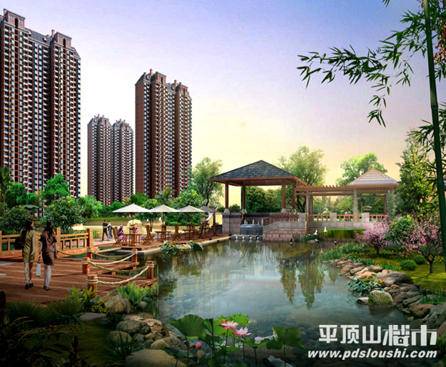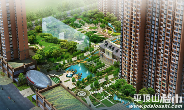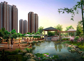 景观:社区中央绿化景观带建有蜿蜒的人工河流,创造出亲水、近水、绿水相依相存的优美环境,果岭式地形贯穿场地