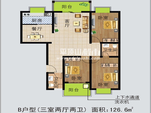 - ·主力户型:两室一厅一卫、三室两厅两卫