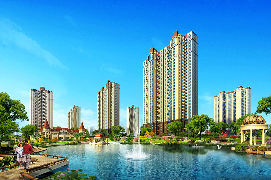 醉美园林、园区内湖、风情商业街、一级资质物业