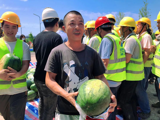 大会最后,为安全生产助力加油,东方今典|学府项目精心准备了3000余斤西瓜发至一线施工人员手中。