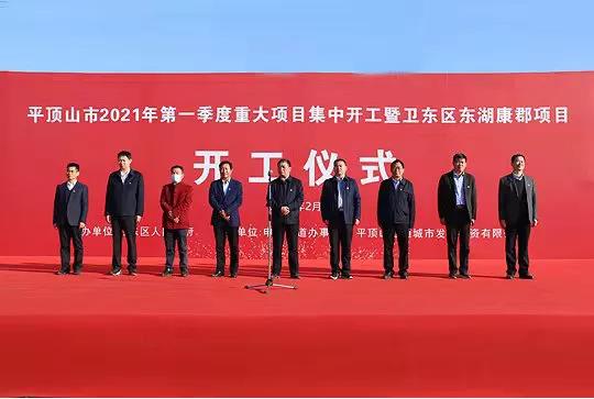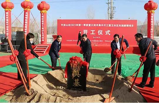 在开工仪式上,卫东区主要领导、汇恒公司项目负责人先后进行致辞,致辞完毕后在阵阵礼炮的轰鸣中,卫东区区委书记王迎波宣布卫东区东湖康郡项目开工奠基仪式正式启动,领导们共同为东湖康郡开工奠基仪式挥汗培土!