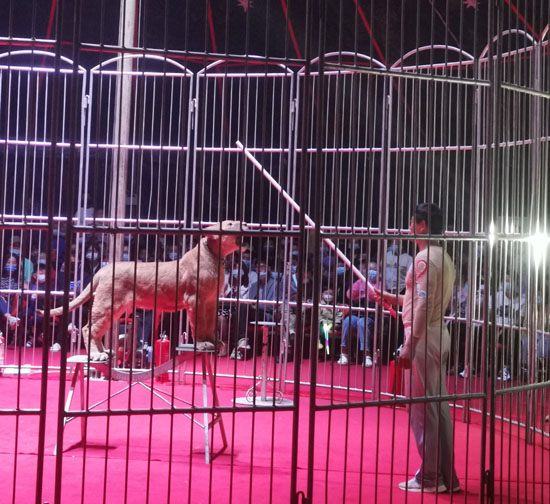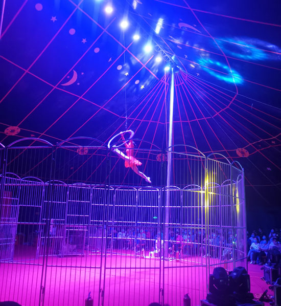 除此之外还有令人震撼高空吊环,高空叠椅以及霸气的非洲森林之王狮子,拥有“森林之王”美誉的狮子在驯兽师的指挥下显得异常温顺,其高难度表演也是惊呆了现场的观众。