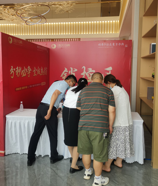 在万众期待之中,7月31日平顶山东方今典接待中心前广场,人声鼎沸,盛况空前,众多客户朋友们在欢声笑语中期待着东方今典临河瞰景高层的盛大开盘!